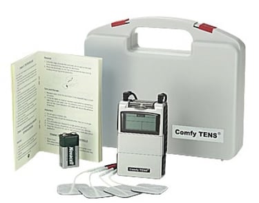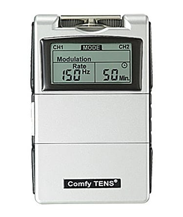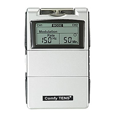 El estimulador Comfy TENS® presenta 5 modos de estimulación, anchura de pulso ajustable, tipo de pulso y temporizador de tratamiento.